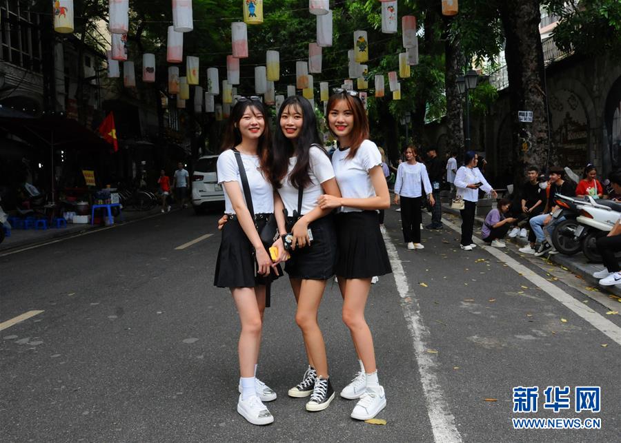 10月1日,女青年在越南首都河内古街区合影,街头的灯笼是越南中秋节的特色装饰物。 农历八月十五是越南中秋节,也是当地儿童和青年们的节日。依照习俗,人们会给孩子们赠送各种玩具、饰品和零食。今年节日期间,河内古街区热闹非凡,各式礼品装饰品摊位吸引市民前来休闲、购物。 新华社记者 陶军 摄