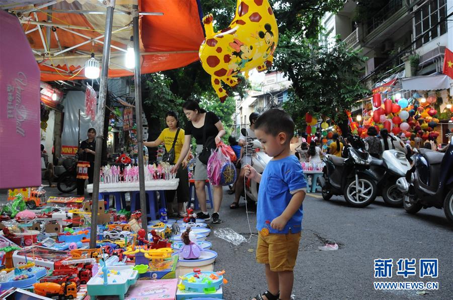 10月1日,一名男孩在越南首都河内古街区的商铺挑选玩具。 农历八月十五是越南中秋节,也是当地儿童和青年们的节日。依照习俗,人们会给孩子们赠送各种玩具、饰品和零食。今年节日期间,河内古街区热闹非凡,各式礼品装饰品摊位吸引市民前来休闲、购物。 新华社记者 陶军 摄