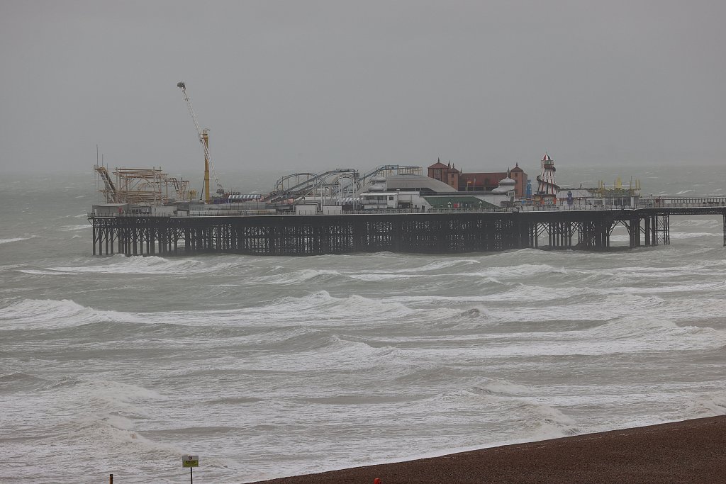 风暴“亚历克斯”登陆英国布莱顿 海岸掀起风浪