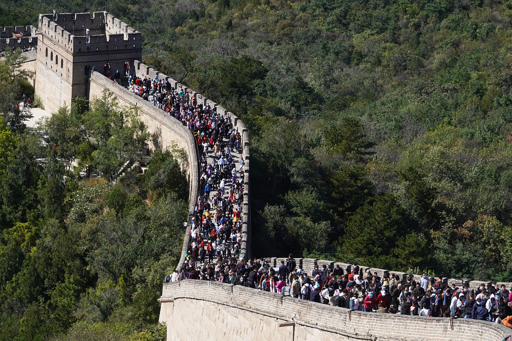 2020年10月4日,国庆长假第四天,北京八达岭长城游人如织。 图片作者:庞铮铮/视觉中国