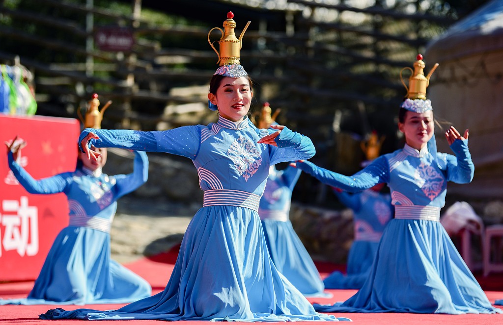 2020年10月4日,演员在呼和浩特市乌兰牧骑展演中表演舞蹈《奶酒飘香》。