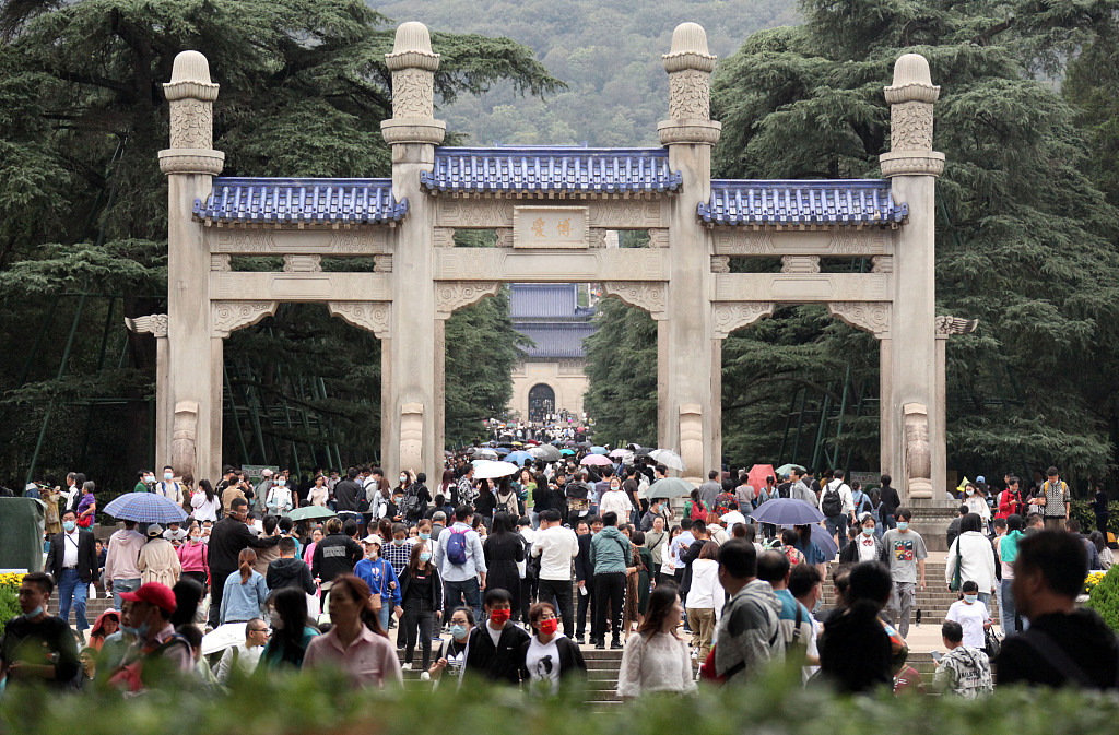 2020年10月4日,国庆长假第四天,南京中山陵景区游人如织。 图片作者:签约供稿人/视觉中国