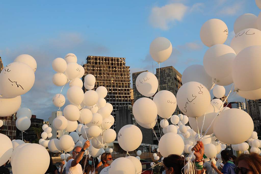 黎巴嫩放飞白气球 悼念贝鲁特港大爆炸遇难者
