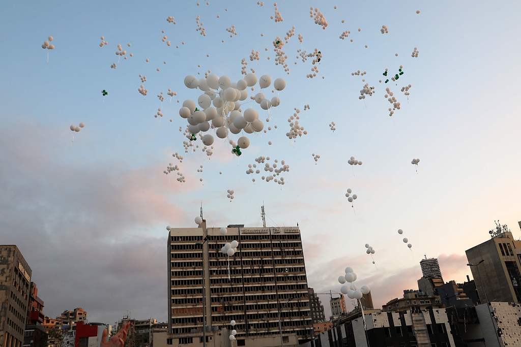 黎巴嫩放飞白气球 悼念贝鲁特港大爆炸遇难者