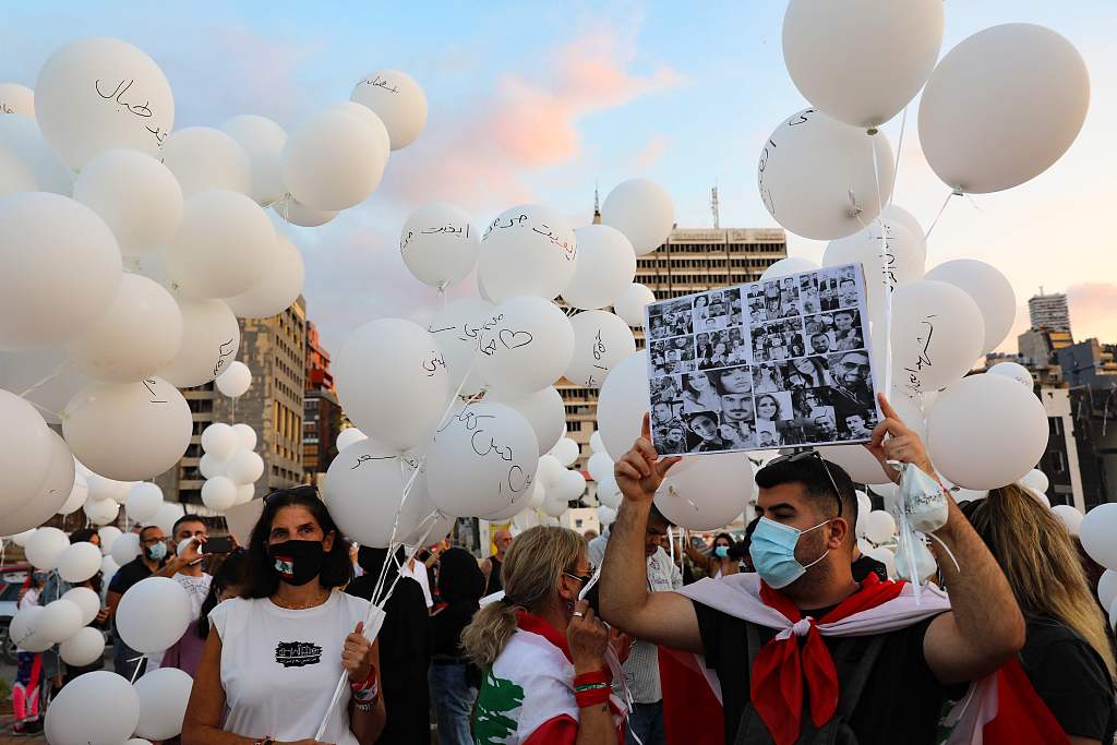 黎巴嫩放飞白气球 悼念贝鲁特港大爆炸遇难者