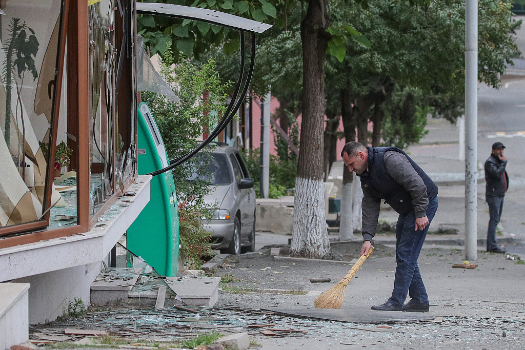 当地时间2020年10月4日,纳卡地区斯捷潘纳克特,亚美尼亚与阿塞拜疆在纳戈尔诺-卡拉巴赫(纳卡)地区军事冲突进入第八天,民众拿着东西避难。当天双方发生激烈交火,战事逐渐白热化,迄今造成至少240人死亡,当地平民受到波及。图片作者:人民视觉