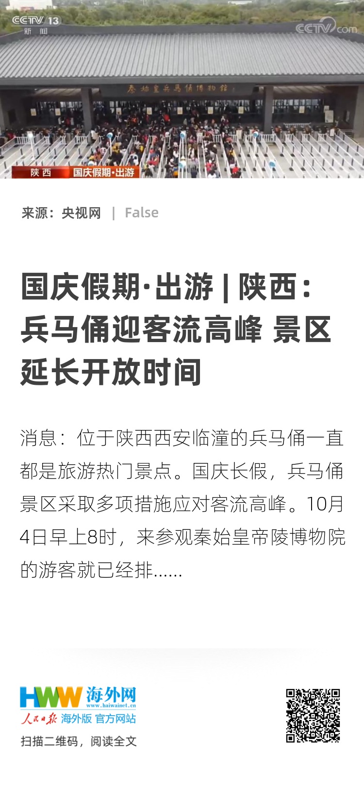 央视网消息:位于陕西西安临潼的兵马俑一直都是旅游热门景点。国庆长假,兵马俑景区采取多项措施应对客流高峰。