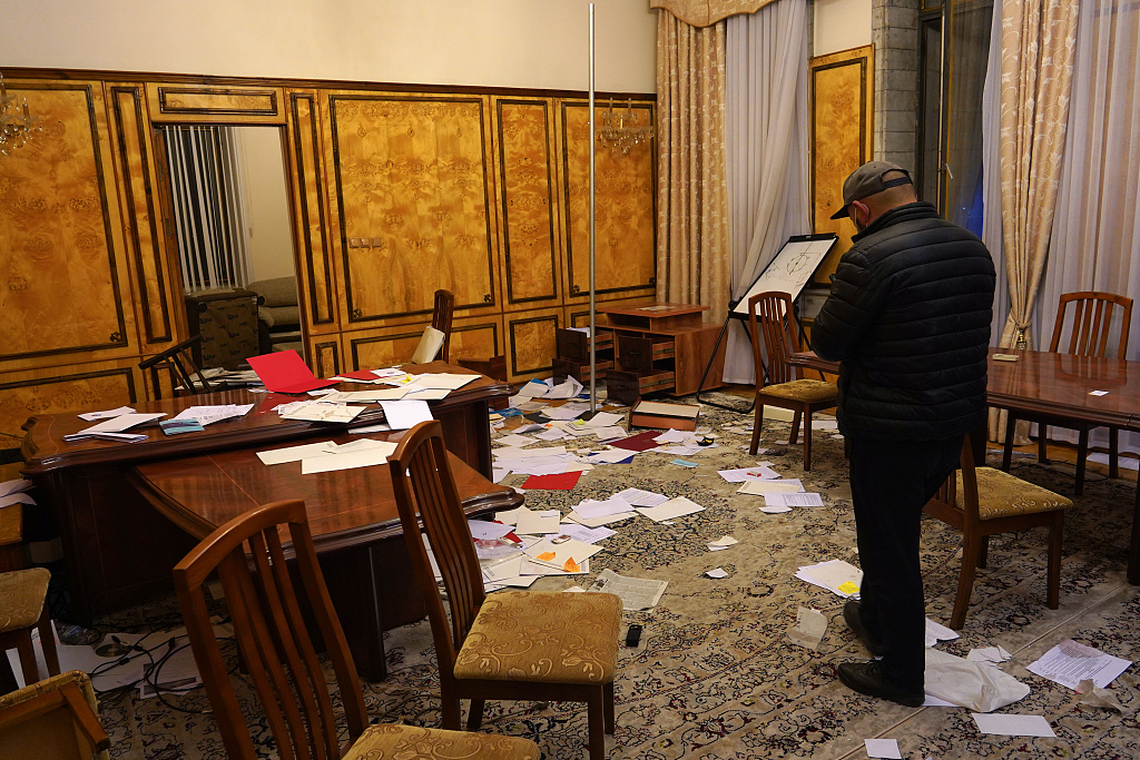 当地时间2020年10月5日,吉尔吉斯斯坦反对派支持者占领了位于首都比什凯克、集总统府和议会办公地点为一体的政府大楼“白宫”。与此同时,已获得足够票数可顺利进入议会的团结党领导人表示同意重新举行选举,并呼吁其他得票率超过7%的党派加入这一行列。图片作者:人民视觉