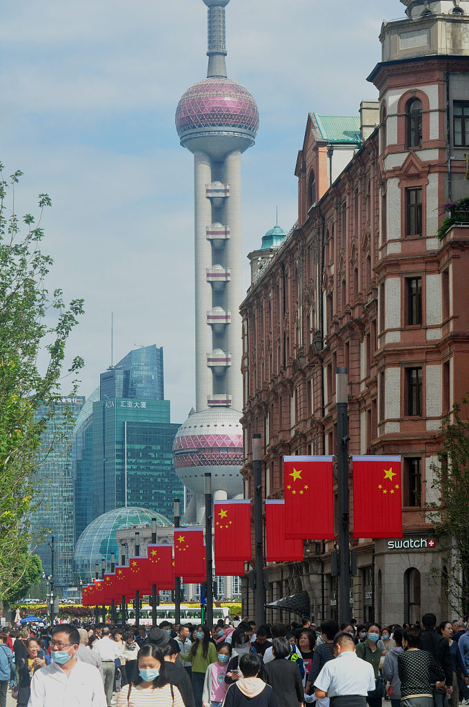 2020年10月6日,国庆长假第六天,上海南京路商业步行街人头攒动,众多游客在步行街上观光游览。