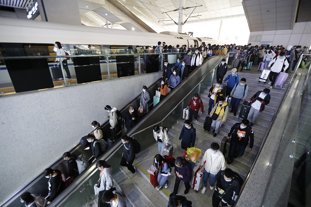 2020年10月8日,重庆北站,到达该站的乘客正在出站。图片来源:视觉中国