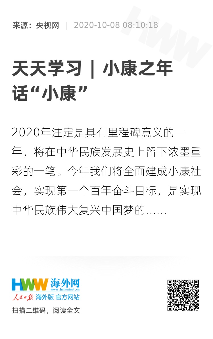 在2020年春节团拜会上,习近平总书记曾引用《诗经》中的“民亦劳止,汔可小康”,对“小康”的概念进行历史溯源。