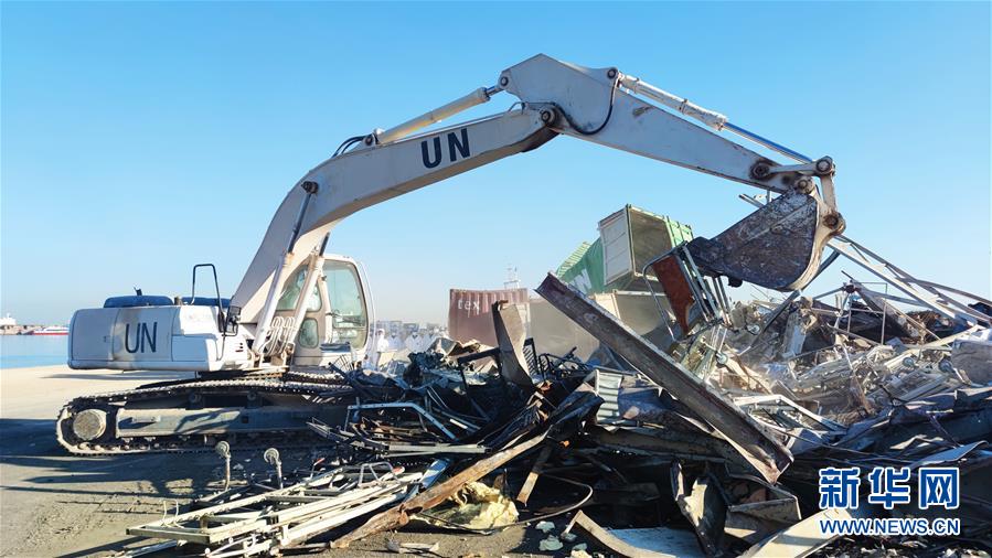 10月1日,中国维和官兵在黎巴嫩贝鲁特港帮助清理爆炸废墟。 新华社发(赵文环摄)