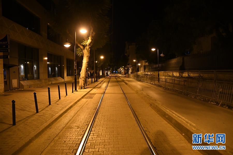 这是10月8日晚拍摄的突尼斯首都突尼斯市中心空旷的街道。 为防止新冠疫情扩散,突尼斯政府决定自8日起在大突尼斯地区实施为期15天的宵禁。 新华社发(阿代尔摄)