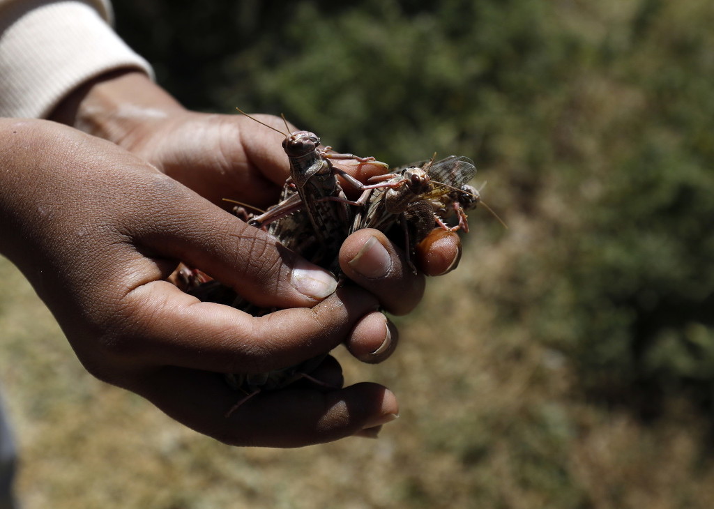 当地时间2020年10月9日,也门萨那,沙漠蝗虫满天飞触目惊心。沙漠蝗虫在也门几个城市蔓延,对该国的粮食安全造成威胁。图片来源:东方IC