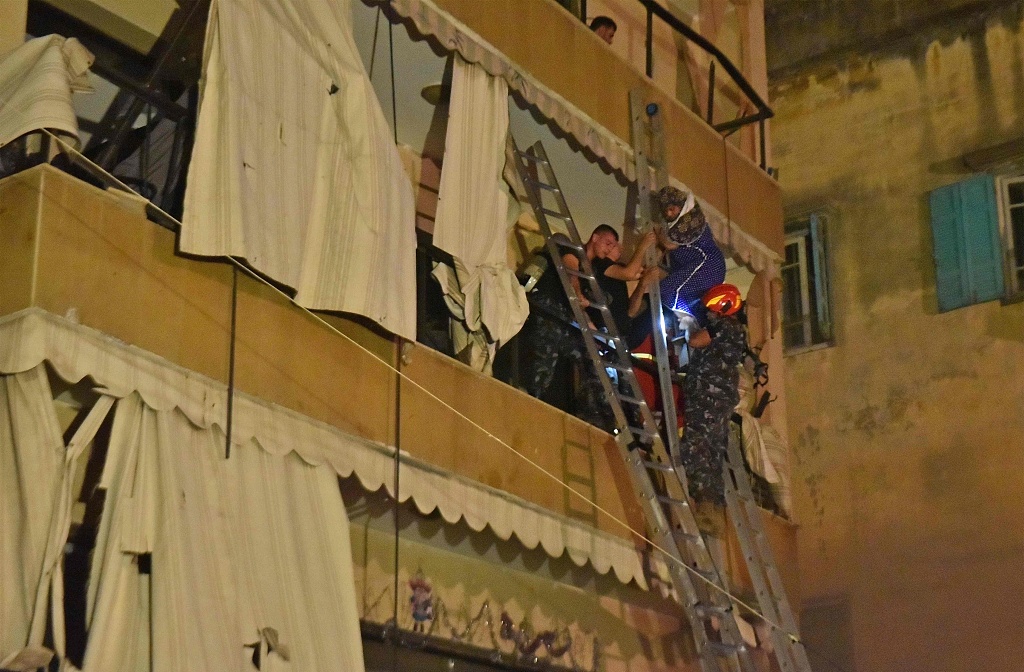 2020年10月10日讯,黎巴嫩首都贝鲁特一居民区当地时间10月9日发生储油罐爆炸,造成至少4人死亡、数十人受伤。据黎巴嫩媒体报道,当地时间9日20时左右,贝鲁特居民区一栋高层建筑的底商面包店发生储油罐爆炸,引发大火。黎巴嫩民防和消防部门人员迅速赶至现场灭火,并使用消防云梯等疏散楼内居民。黎巴嫩军方封锁了周边区域。图片来源:视觉中国
