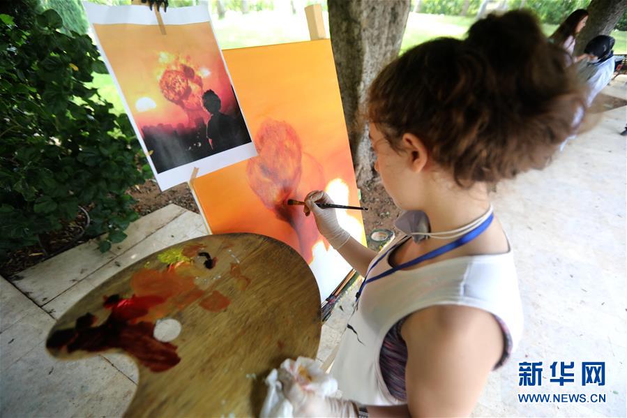10月10日,在黎巴嫩首都贝鲁特市中心一座公园内,一名艺术家在创作。 黎巴嫩百余名艺术家10日在首都贝鲁特市中心一座公园举办绘画和雕塑艺术创作展,其收益用于帮助那些在贝鲁特港大爆炸中受灾的家庭。这一艺术展将持续两天。 新华社发(比拉尔·贾维希摄)