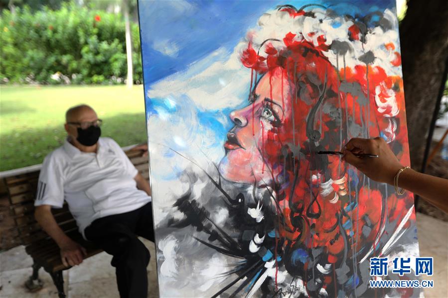 10月10日,在黎巴嫩首都贝鲁特市中心一座公园内,一名艺术家在创作。 黎巴嫩百余名艺术家10日在首都贝鲁特市中心一座公园举办绘画和雕塑艺术创作展,其收益用于帮助那些在贝鲁特港大爆炸中受灾的家庭。这一艺术展将持续两天。 新华社发(比拉尔·贾维希摄)