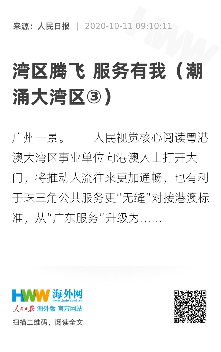 粤港澳大湾区事业单位向港澳人士打开大门,将推动人流往来更加通畅,也有利于珠三角公共服务更“无缝”对接港澳标准,从“广东服务”升级为“湾区服务”