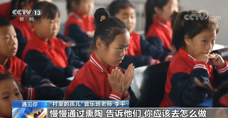 “村里的孩儿”音乐班老师 李平:最感动的就是你把这个歌词教给他们,他们每个人,就是散发着洋溢的笑去唱你这个歌词的时候,非常正能量的状态,非常开心。