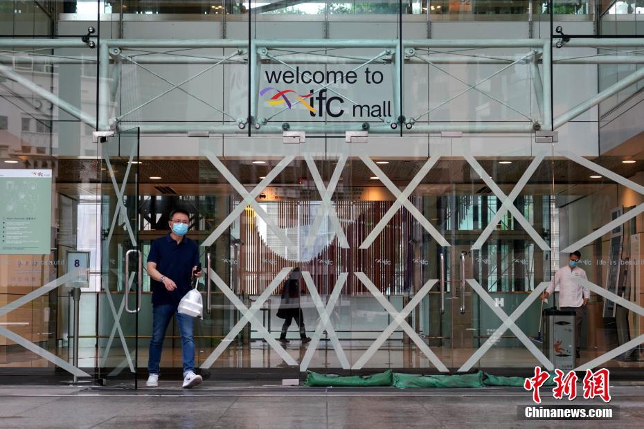 10月13日,香港中环一家商场的玻璃大门贴上了大量胶带,防止大风破坏。受台风“浪卡”影响,香港天文台当天清晨5时40分发布八号东北烈风或暴风信号,当时,台风“浪卡”集结在香港西南偏南约450公里。 中新社记者 张炜 摄