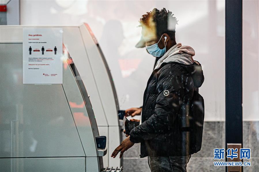 10月14日,在德国首都柏林,一名戴口罩的男子使用自动取款机。 德国疾控机构罗伯特·科赫研究所14日公布的新冠疫情数据显示,截至当天零时,德国较前一日新增确诊病例5132例,创4月初以来单日新增最高纪录。 新华社发