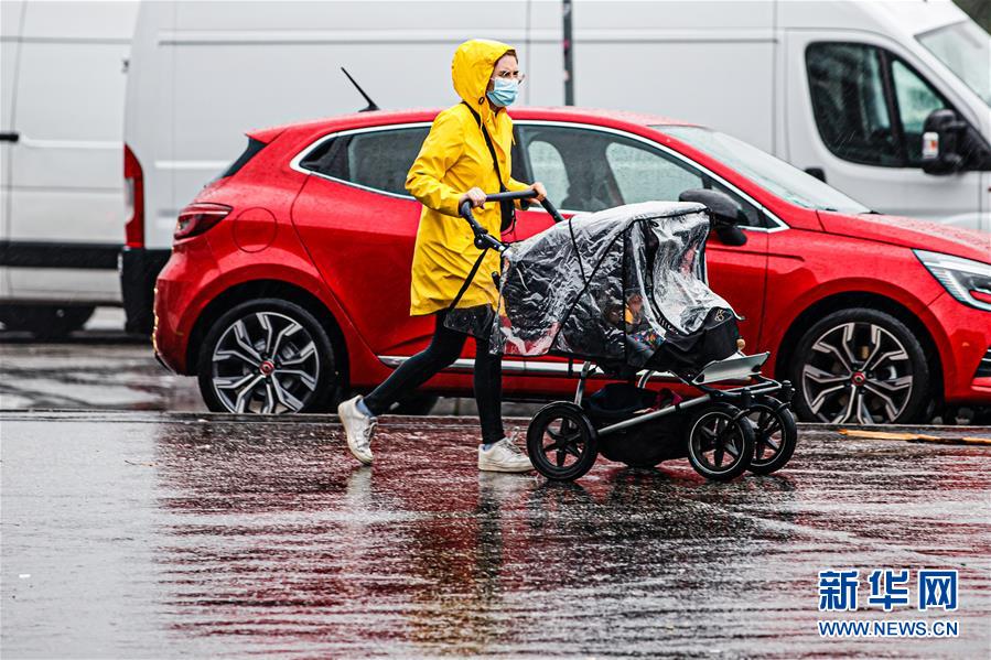 10月14日,在德国首都柏林,一名戴口罩的女子推着婴儿车从街头走过。 德国疾控机构罗伯特·科赫研究所14日公布的新冠疫情数据显示,截至当天零时,德国较前一日新增确诊病例5132例,创4月初以来单日新增最高纪录。 新华社发