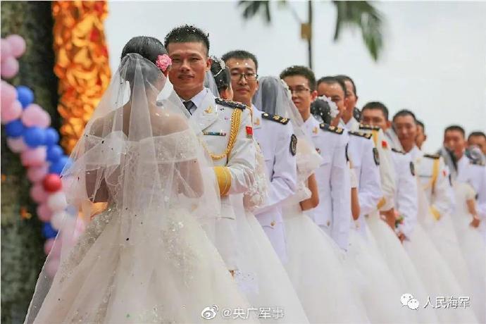 近日,海军陆战队某旅专门为16对新人举办了一场特殊的集体婚礼。价值千万的防空导弹车被装点一新,组成整齐的车队迎接新娘,把幸福载入婚礼殿堂。今天你是最美丽的新娘,今天我是最暖心的新郎。祝福所有军恋天长地久,愿天下有情人终成眷属。(人民海军)