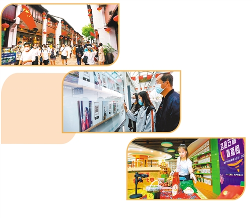 图① 国庆中秋假期,各地景区迎来游客高峰,消费火爆。在江苏苏州市七里山塘文化街区,国旗与红灯笼扮靓老街,游人在这里品味姑苏文化之美。经济日报记者 王 晋摄