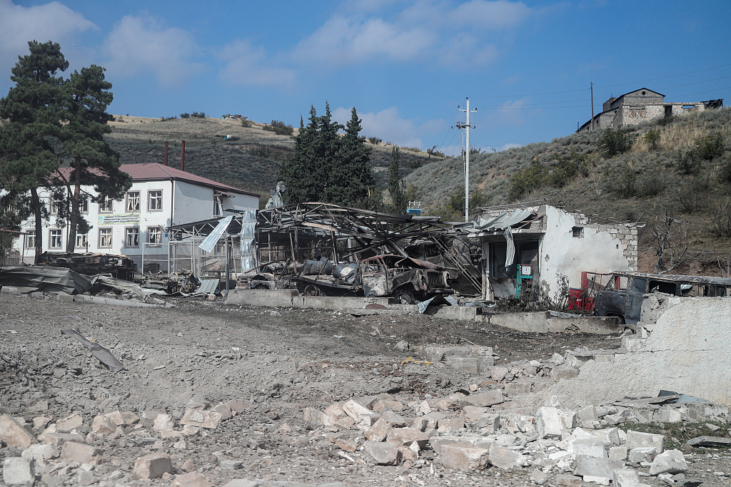 当地时间2020年10月15日,纳卡地区马尔克特(Martakert)一军队医院遭到袭击,军官和士兵对该医院进行视察。亚阿在纳卡地区爆发的冲突仍在持续。亚美尼亚方面表示,阿塞拜疆武装力量从当天清晨开始,在纳卡地区接触线恢复了炮击行动。另一方面,俄罗斯和欧盟10月14日就解决纳卡问题进行了磋商,双方强调亚阿应遵守人道主义停火规定。图片来源:视觉中国