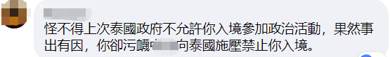黄之锋2016年10月从香港前往泰国进行“交流”,抵达曼谷国际机场后被当地入境部门拘留。有网友想起了这事,称“怪不得上次泰国政府不允许你入境参加活动,果然事出有因”。↓