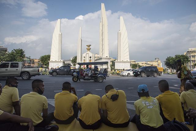 当地时间10月14日,泰国曼谷再次爆发反政府示威集会,以青年学生为主的示威者聚集在曼谷民主纪念碑附近,并与一部分支持政府、拥护王室的“保皇派”激烈对峙,甚至发生了小规模肢体冲突。图源:人民视觉