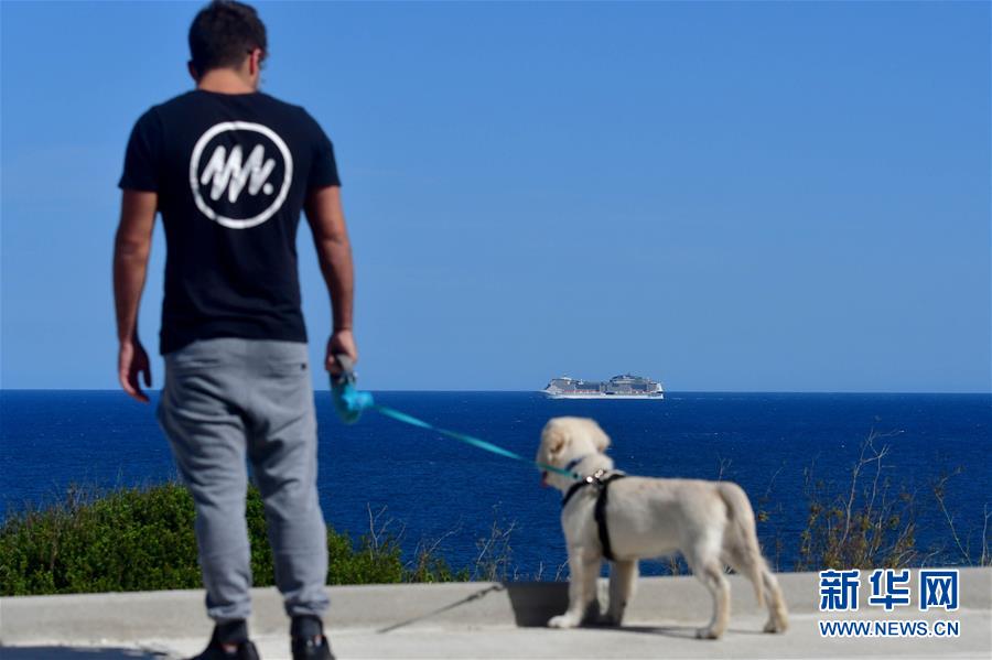 10月16日,一艘邮轮抵达马耳他瓦莱塔港,但因邮轮上出现新冠疑似病例,乘客未被允许上岸后驶离。 新华社发(乔纳森·博格 摄)