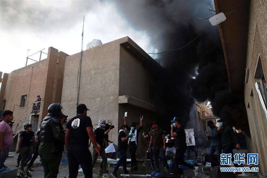 10月17日,示威者闯入位于伊拉克巴格达的库尔德斯坦民主党(库民党)总部并纵火。 当天,伊拉克库尔德自治区(库区)两大执政党之一的库尔德斯坦民主党(库民党)位于巴格达的总部遭示威者闯入并纵火。库区领导人当天发表声明予以强烈谴责。 新华社发