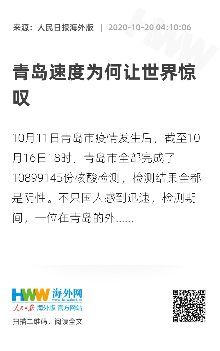 略微磕绊的表达掩盖不住约瑟夫衷心的赞叹之情。很多国外媒体也对核酸检测的青岛速度发出“不可思议”的感叹。