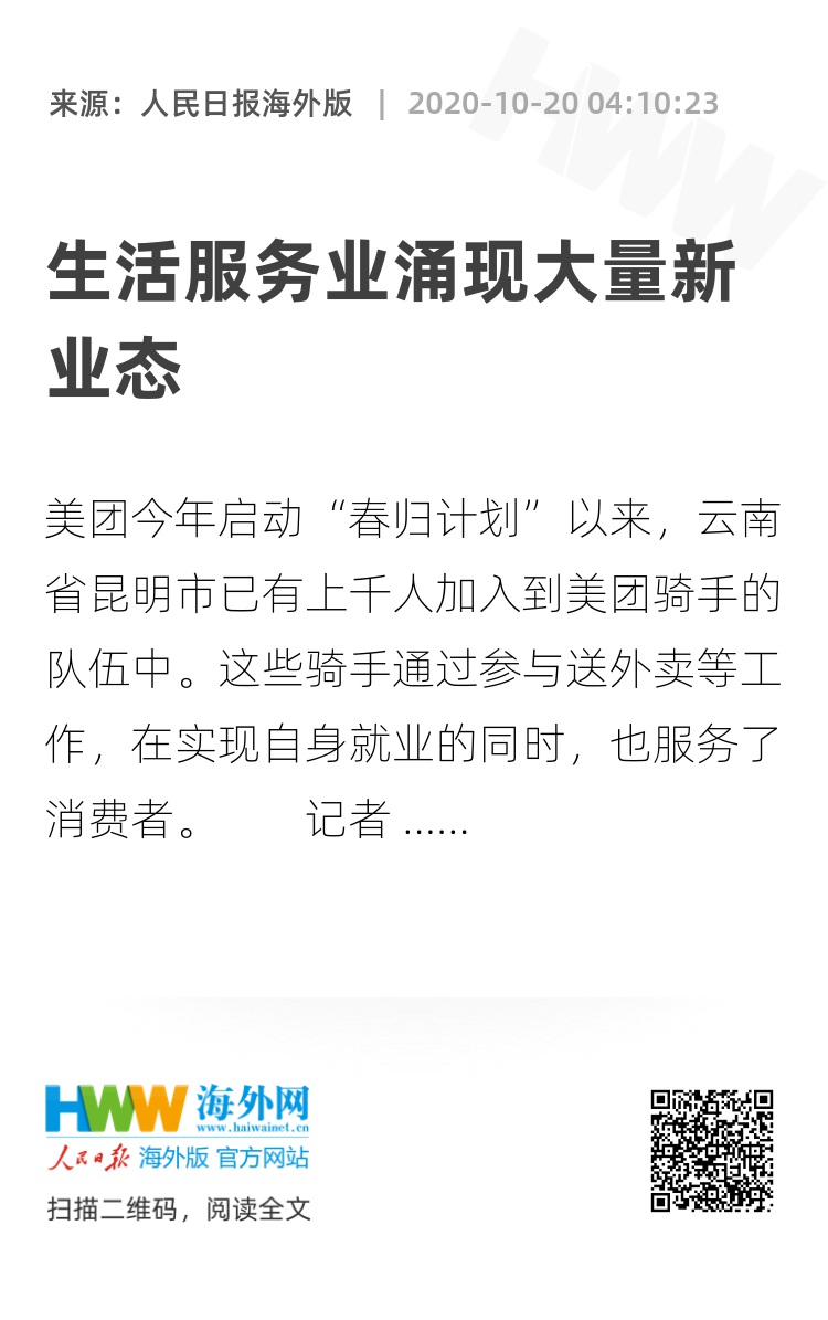 10月12日,美团研究院联合智联招聘发布《2020年生活服务业新业态和新职业从业者报告》显示,2019年美团平台上生活服务业新业态交易额达到4837.4亿元,2016年到2019年间,美团平台上的生活服务业新业态交易额增长了2.7倍,年平均增长率达到55.1%。