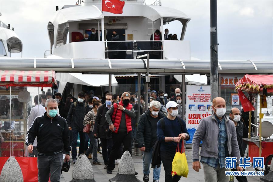 10月21日,在土耳其伊斯坦布尔,人们戴着口罩出行。 土耳其卫生部官网显示,该国当天新增确诊1894例,累计确诊351413例;新增死亡74例,累计死亡9445例;累计治愈306939例。 新华社记者徐速绘摄
