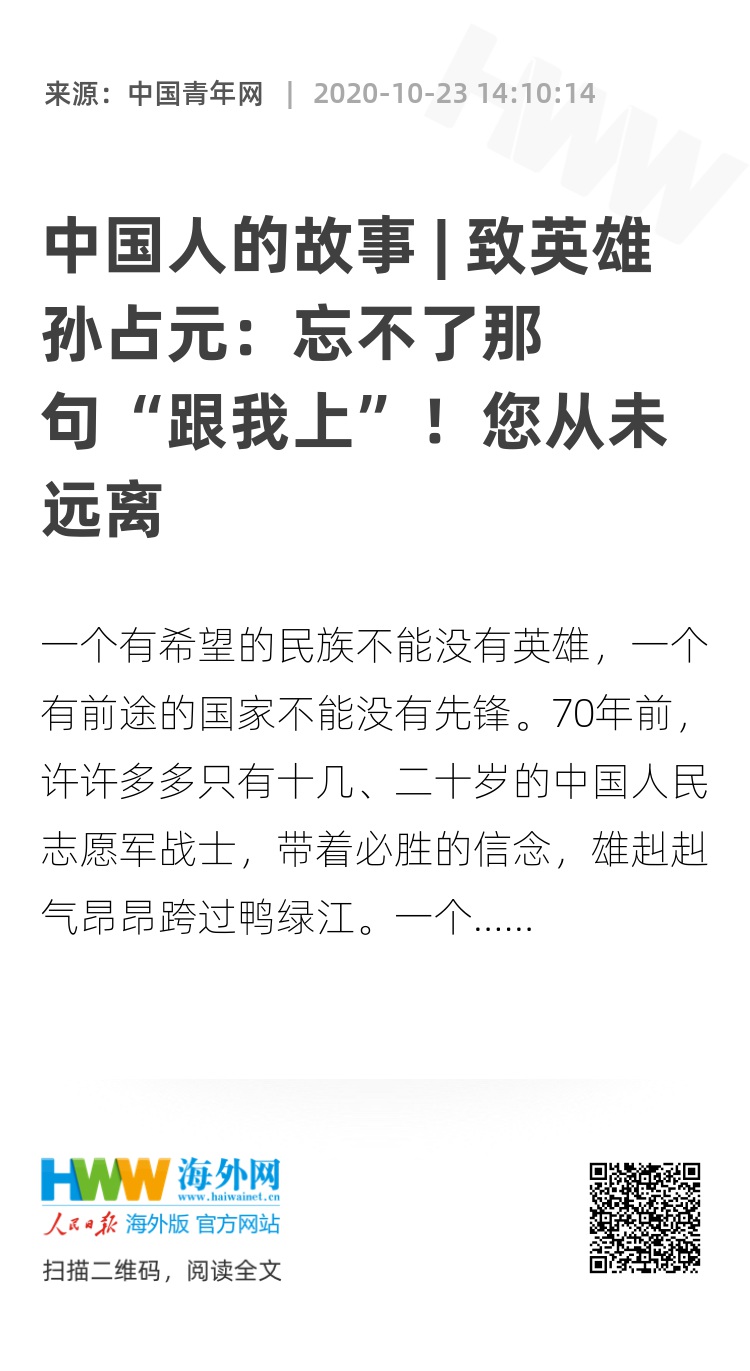 70年前,中国人民志愿军用生命将战火挡在国门之外,为我们守护岁月静好;