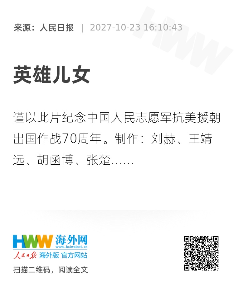 谨以此片纪念中国人民志愿军抗美援朝出国作战70周年。制作:刘赫、王靖远、胡函博、张楚