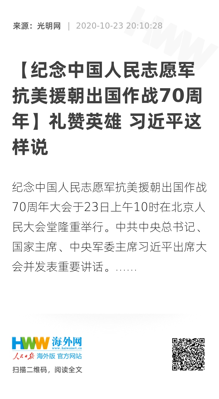 纪念中国人民志愿军抗美援朝出国作战70周年大会于23日上午10时在北京人民大会堂隆重举行。中共中央总书记、国家主席、中央军委主席习近平出席大会并发表重要讲话。