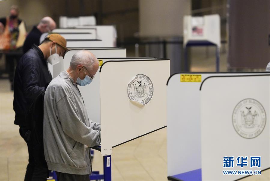 10月24日,选民在美国纽约麦迪逊花园广场投票点提前投票。 纽约州2020美国大选提前投票当日启动。美国大选投票日是11月3日,但多地已经开始提前投票。 新华社记者 王迎 摄