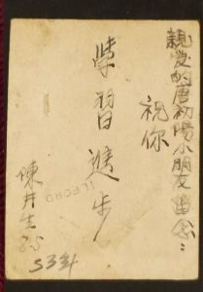陈爷爷所珍藏的唐奶奶寄给他的照片