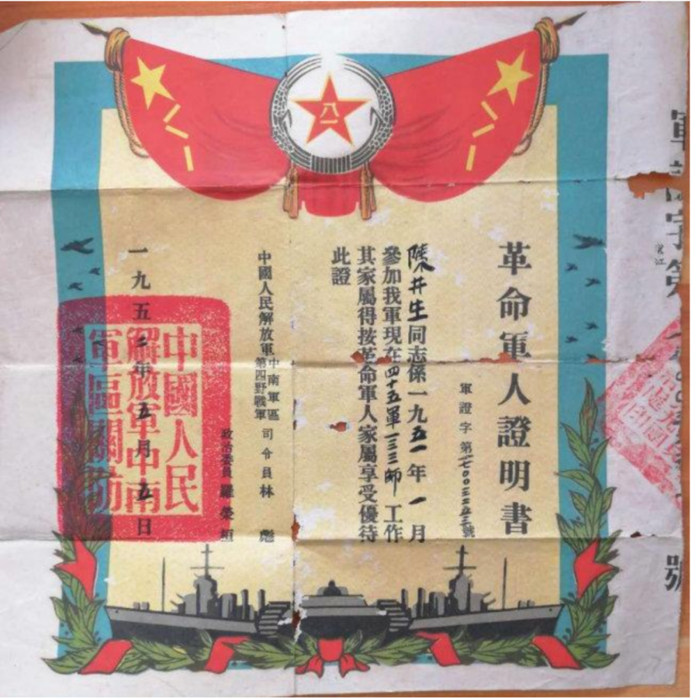 9岁的唐初阳与“志愿军叔叔”陈井生