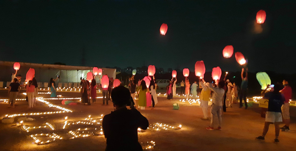 点蜡烛放天灯 印度民众庆祝都瑟拉节