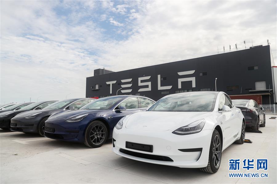 10月26日拍摄的特斯拉上海超级工厂内的Model 3汽车。 当日,全球知名汽车企业特斯拉宣布,中国制造Model 3将于10月27日首次出口欧洲,首批7000辆汽车将在11月底抵达欧洲,销往德国、法国、意大利、西班牙、葡萄牙、瑞士等国家。 新华社记者 丁汀 摄