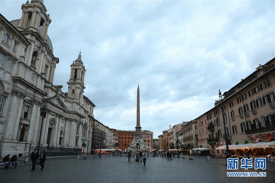 10月26日,意大利首都罗马纳沃纳广场临近18时行人稀少。 意大利政府采取一系列新措施,进一步加强新冠疫情防控。自10月26日零时起至11月24日,意大利禁止酒吧、咖啡馆、餐厅、冰淇淋店等每天18时后继续提供堂食。 新华社记者 程婷婷 摄