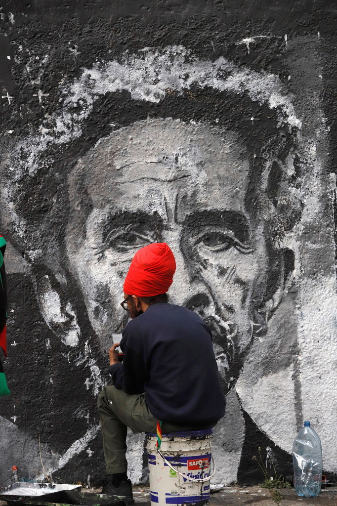 当地时间2020年10月22日,哥伦比亚波哥大,城市艺术节举行,艺术家在社区涂鸦和创作壁画。图片来源:东方IC