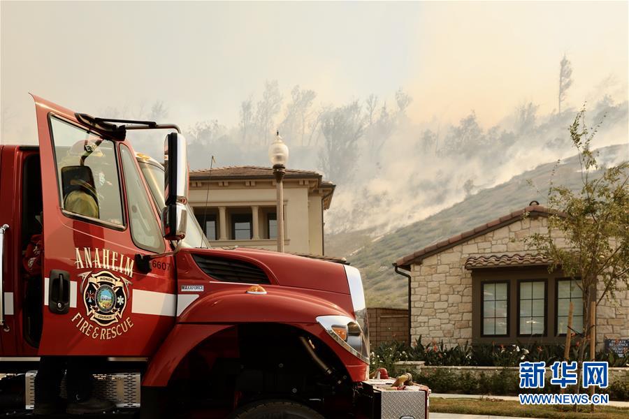 10月26日,消防员在美国加利福尼亚州奥兰治县灭火。 10月26日,位于美国加利福尼亚州南部的奥兰治县发生两起野火,快速蔓延的野火导致数万居民被迫撤离,两名消防员重伤。 新华社发