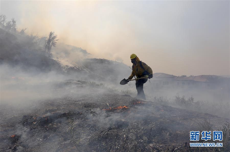 10月26日,消防员在美国加利福尼亚州奥兰治县灭火。 10月26日,位于美国加利福尼亚州南部的奥兰治县发生两起野火,快速蔓延的野火导致数万居民被迫撤离,两名消防员重伤。 新华社发