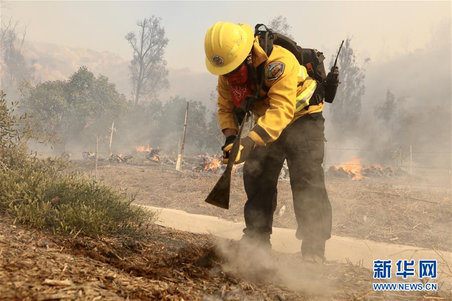 10月26日,消防员在美国加利福尼亚州奥兰治县灭火。 10月26日,位于美国加利福尼亚州南部的奥兰治县发生两起野火,快速蔓延的野火导致数万居民被迫撤离,两名消防员重伤。 新华社发