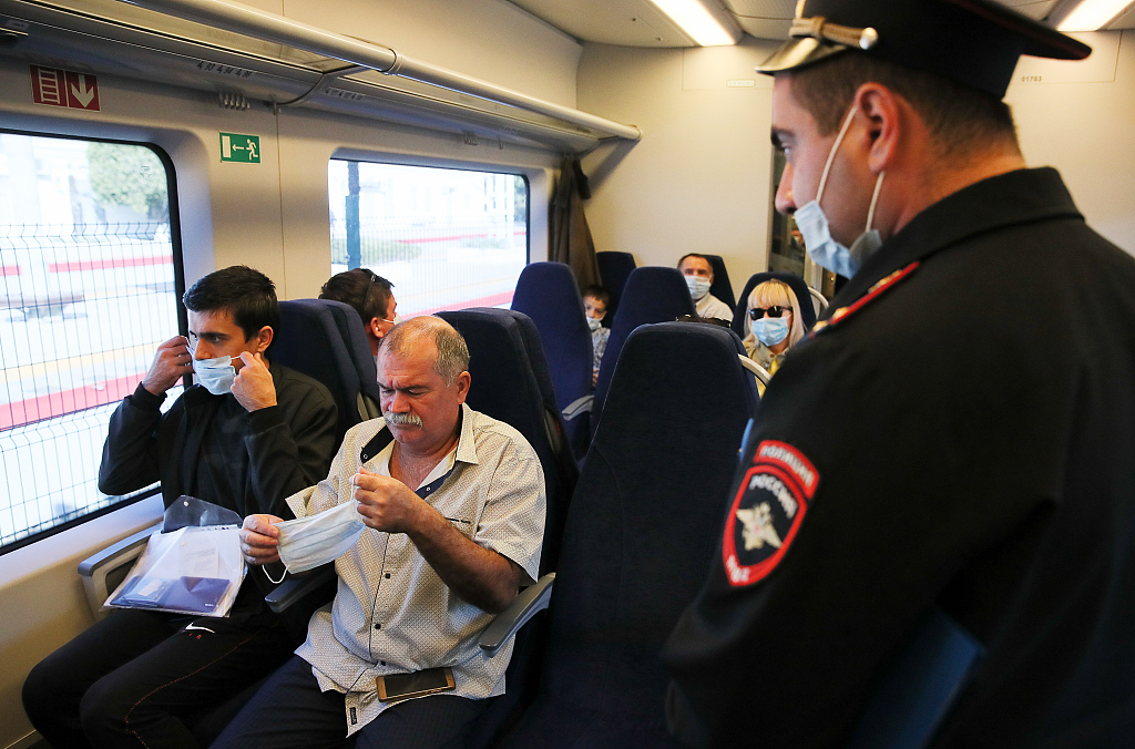 当地时间2020年10月27日,俄罗斯索契,火车和地铁强制要求戴口罩。图片来源:人民视觉/视觉中国